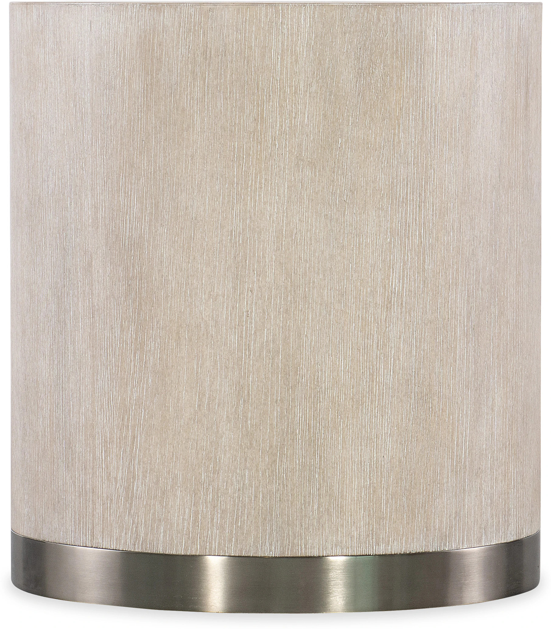 Sleek and stylish with a simple and timeless modern profile, the Modern Mood Round End Table combines Quartered Oak Veneers with a metal-wrapped band around the base in a warm pewter finish. The wood table is finished in Diamond, featuring tactile wire-brush detailing with crystal-like alabaster and pewter hues for a soft sophistication. Unbound by geographical design, Modern Mood presents itself as an evolution of design choices, spanning a variety of decades and design movements, while maintaining an unmistakably modern aesthetic that transcends time. The 90-piece collection includes bedroom, dining room, home office, accent and occasional items characterized by substantive forms with soft architectural details. Elevated materials and brushed metal accents in a warm pewter finish are evident throughout the collection, including metal banding and edging as well as marble and glass accents. Crafted with flat cut quartered oak veneer with wire-brushed detailing, Modern Mood is presented in two finishes: Mink and Diamond. Delivering a dark, earthy brown with notes of black, Mink delivers a timeless aesthetic. A much lighter presentation is achieved with the crystal-like alabaster and pewter hues of the Diamond finish, delivering a soft sophistication.